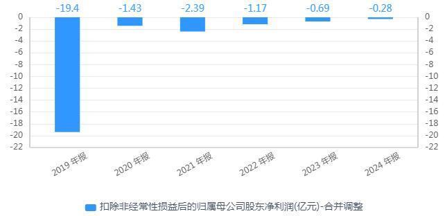 业绩方面,亚太药业的扣非净利润从2019年到2024年,已连续6年亏损。财报显示,2019年至2024年,公司扣非净利润分别为-19.4亿元、-1.43亿元、-2.39亿元、-1.17亿元、-6894.45万元、-2813.19万元,累计亏损超过25亿元。